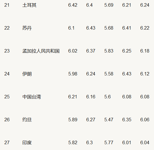 5. 2017年雅思A類(lèi)考試成績(jì)TOP 40的國家或地區
