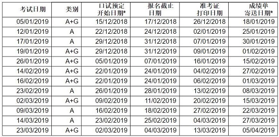2019年1月至3月雅思考試